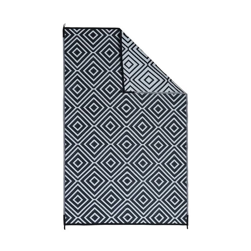 Experience ultimate versatility and convenience with the Aurora Reversible Patio Rug, the perfect foundation for any indoor or outdoor setting. Crafted from durable 100% Polypropylene, this rug is built for all environments, featuring properties that make it waterproof, quick-drying, and mold and mildew resistant. It's reversible for two distinct looks, instantly refreshing your decor for your RV, patio, beach trip, or campsite. Designed for life on the go, it is lightweight and foldable for travel, and includes 4 corner tie-downs to secure it firmly to the ground. Cleanup remains simple: hose off to keep it looking great. This rug measures 8 feet long and 5 feet wide.