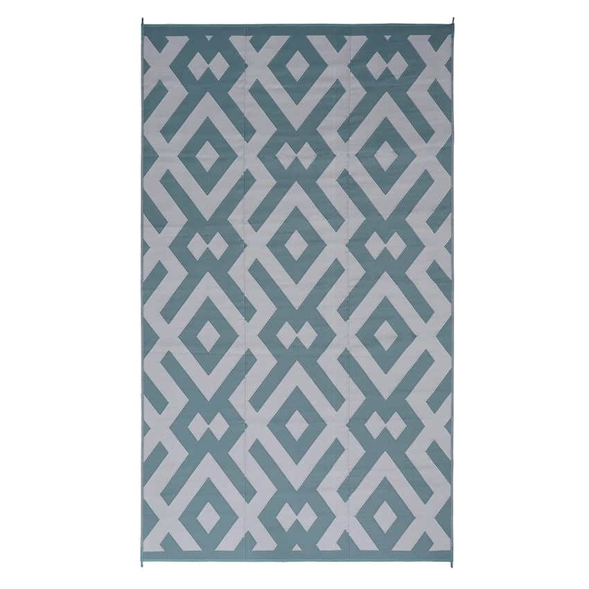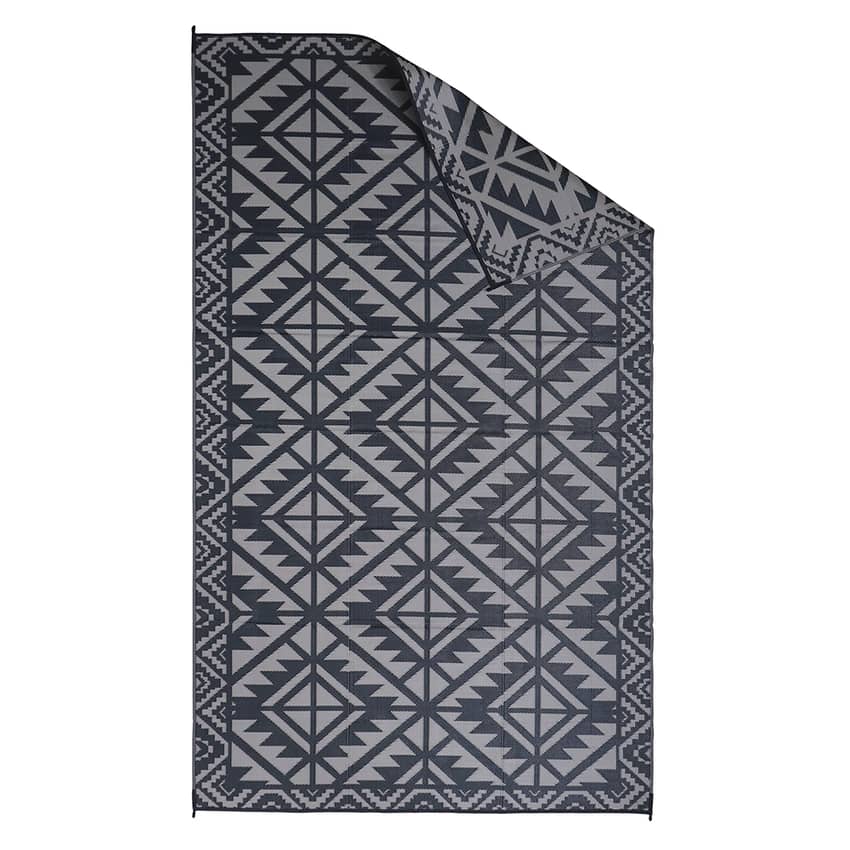 Embrace comfort and style with the Aurora Reversible Patio Rug, an expansive yet practical addition to your outdoor living area, RV site, or large tent setup. Constructed entirely from 100% Polypropylene, this rug is built to withstand the elements, offering essential waterproof, quick-drying, and mold and mildew-resistant properties for dependable indoor and outdoor use. The reversible design offers the flexibility of two distinct patterns in one, allowing you to easily refresh your space. Despite its generous size, it remains lightweight and foldable for travel, and includes 4 corner tie-downs to keep it secure on decks or grass, making it a highly functional and easily maintained decor piece, simply hose off to clean. This patio rug measures 15 feet long and 9 feet wide.
