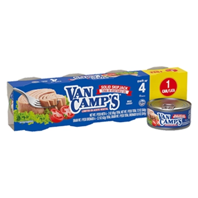 Van Camps Solid Skipjack Tuna, 4 Pack - 3 oz Each