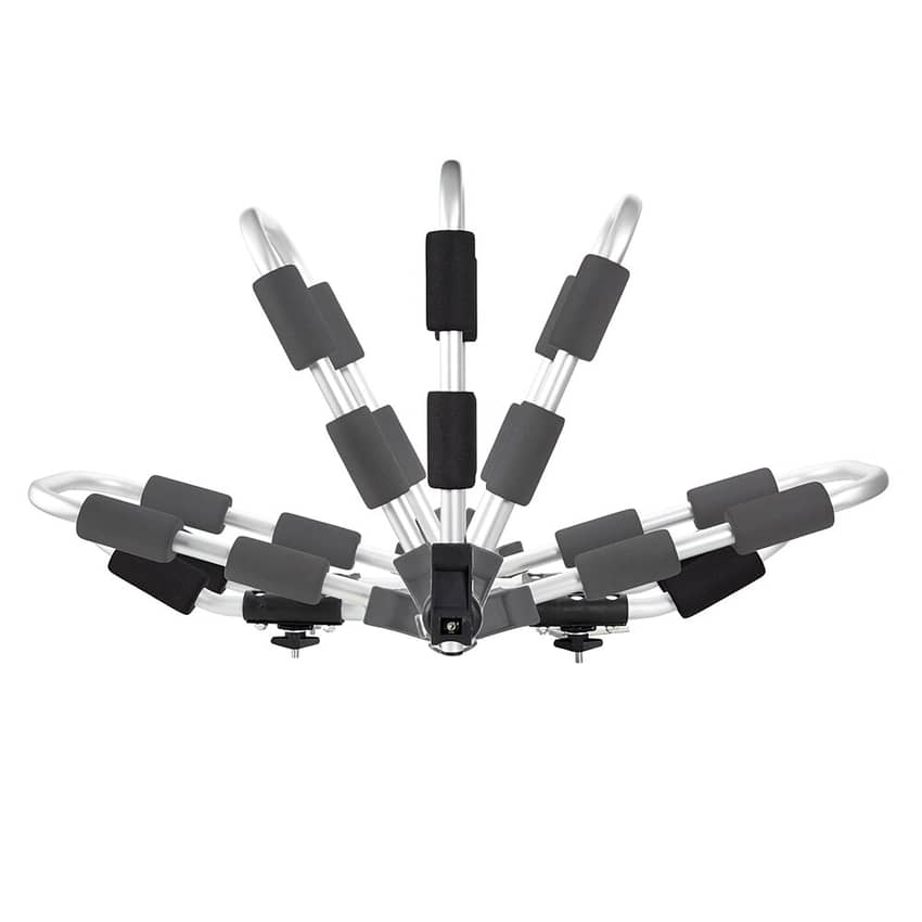 Easily transport your kayaks to the water with our private-label HyroPro double-folding kayak rack! Our high-quality racks can transport two kayaks up to 36 inches wide and 75 pounds. We have added padded cushions to the frames to prevent scratches and scuffs, and the center arm folds down when you aren't using it. Box includes two racks, tie-downs with cam buckles, and mounting hardware.