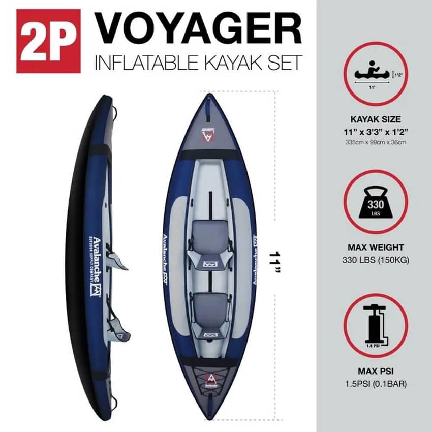 - Avalanche Inflatable 2-Person Voyager Kayak: An inflatable 2-person Kayak