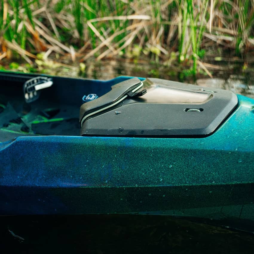 - The hooded bow storage area keeps your belongings accessible and sheds water to help keep things dry