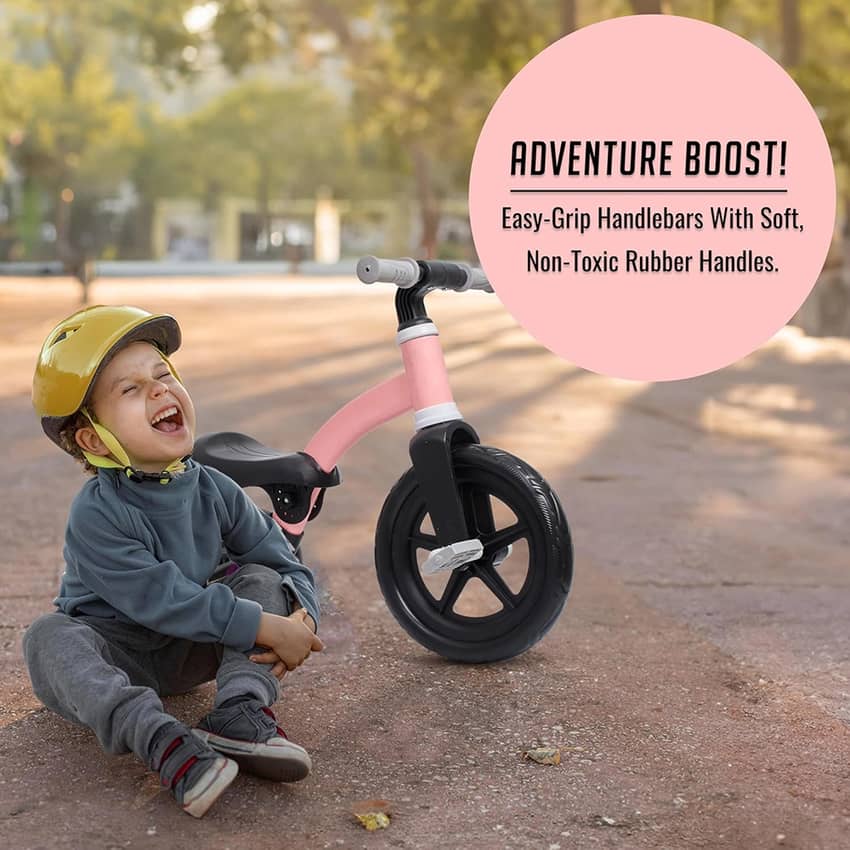 Help your child master balance and cycling skills with the Banana Bike Toddler Tricycle in a fun, vibrant pink. Designed for children ages 2 to 4 years, this durable tricycle features heavy-duty construction to handle energetic play. Its innovative triangular design and extendable rear wheels provide superior stability for a safe ride. The tricycle also has removable pedals, allowing for an easy transition to a balance bike as your child gains confidence. With an adjustable seat and an eye-catching pink frame that enhances visibility, this trike is built to grow with your child and keep them safe during every outdoor adventure. This tricycle weighs 6.4 pounds and measures 25.6 inches long and 19.5 inches high.
