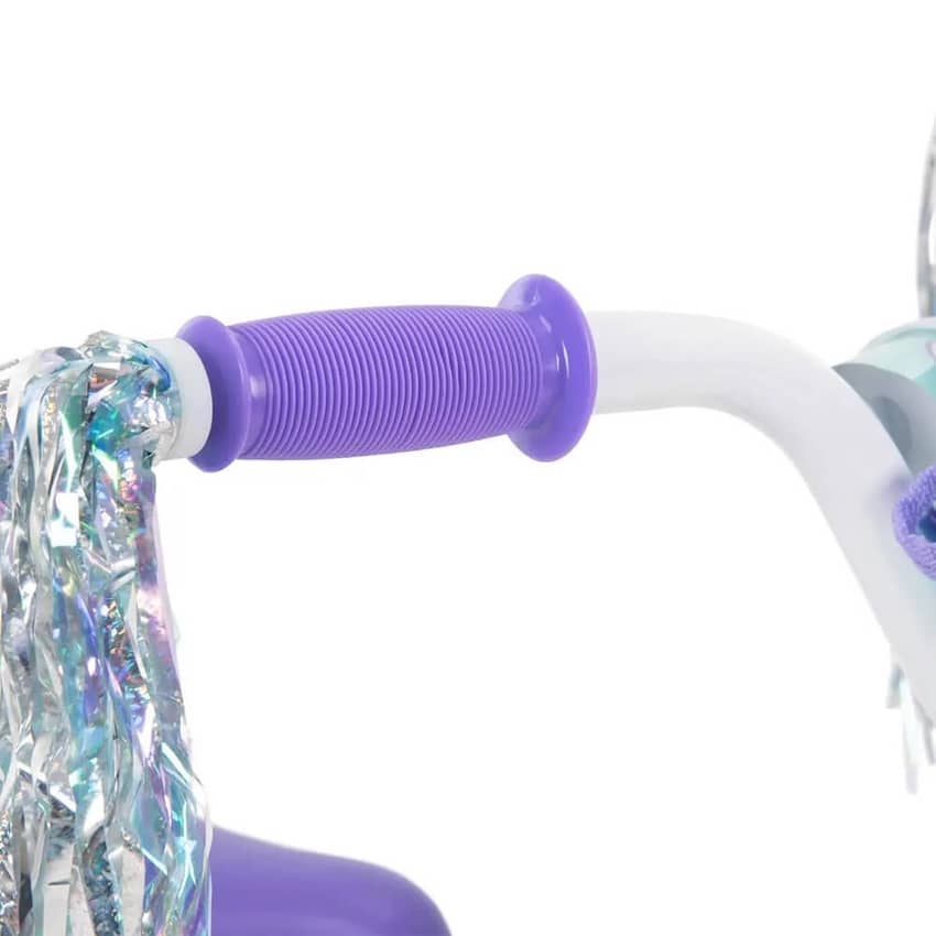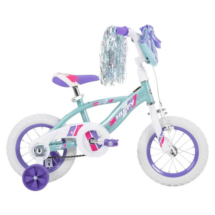This Huffy Glimmer Quick Connect kids' 12-inch bike is the perfect first bike for your little rider. It's easy to assemble, thanks to Huffy's Quick Connect Technology, and it comes with a number of features that make it safe and fun to ride. One of the great things about this bike is its wide-set tires and comfort grips. These features help to make the bike more stable and easier to control, which is important for new riders. The bike also comes with both a front handbrake and an easy-to-use rear coaster brake, giving your child plenty of stopping power. The child's seat is pleasantly padded and fully decorated with fun graphics, making it a comfortable and inviting place for your child to ride. The bike also comes with a kickstand, so your child can easily park their bike when they're finished riding.