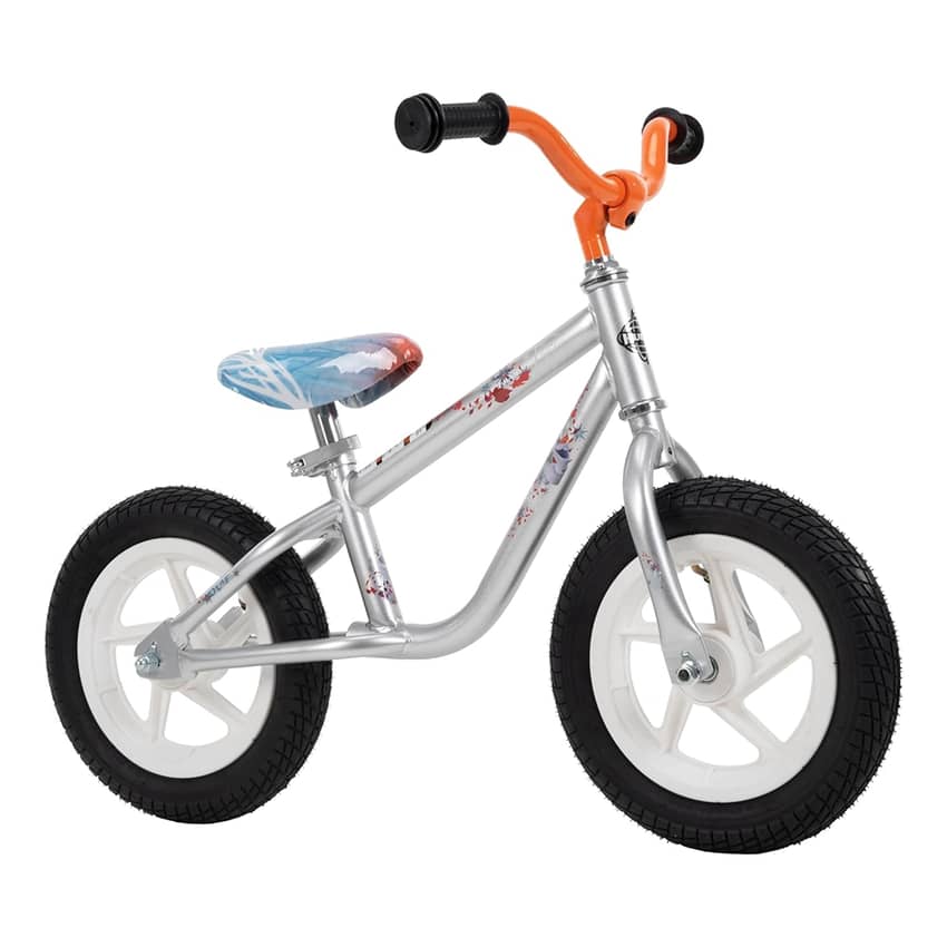 Start your child's cycling journey with the Huffy Kids Olaf Balance Bike, a fun and effective alternative to training wheels. Designed for children ages 2 to 5 with a minimum rider height of 33 inches, this bike helps your little ones develop the balance and coordination they need to ride a bike. Adorned with a fun graphic of Olaf in an icy blast, the bike's multi-color scheme of orange, charcoal gray, and ice blue is sure to delight any child. The low-to-the-ground frame allows children to easily place their feet on the ground for confident stopping, while the wide sidewalk tread tires absorb small bumps for a smoother ride. Plus, the quick-release adjustable seat ensures a perfect fit for your growing child. This bike measures 34.25 inches long, 6.89 inches wide, and 20.47 inches high.