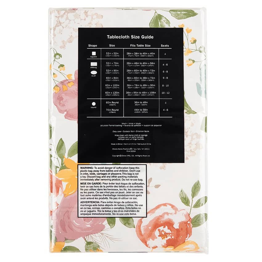 - Floral Vinyl Tablecloth with Flannel Backing