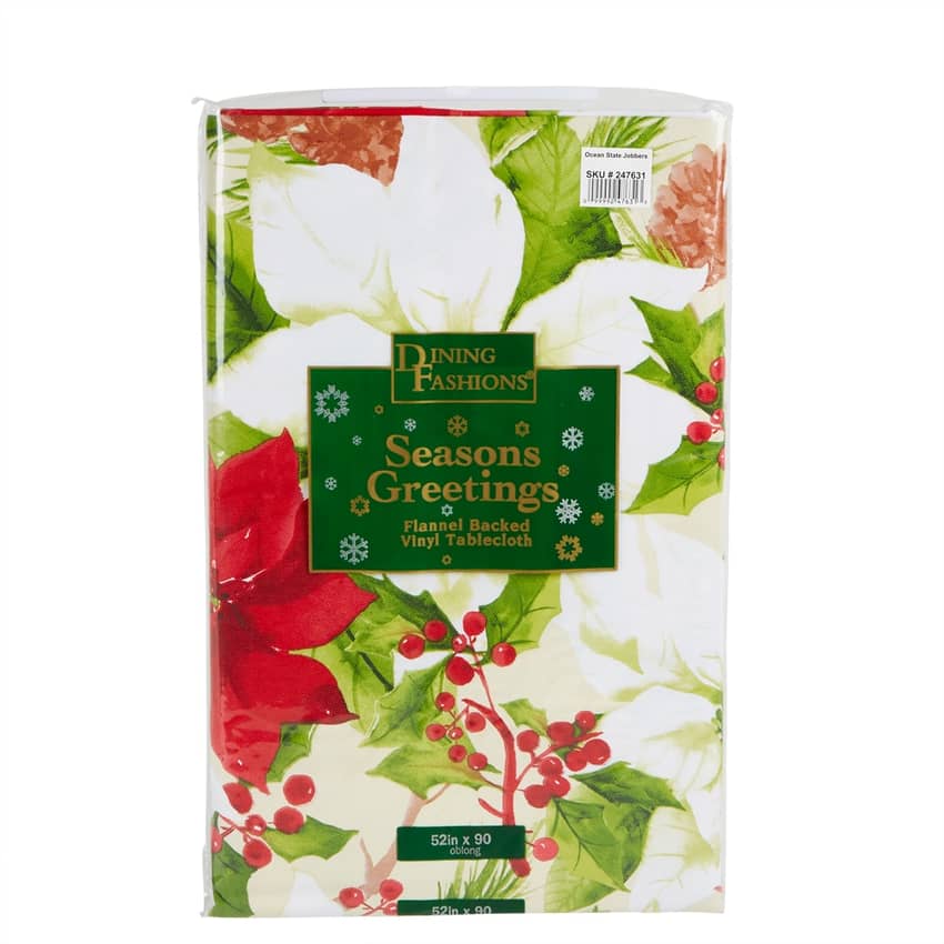- Seasonal Greetings Holiday Vinyl Tablecloth with Flannel Backing