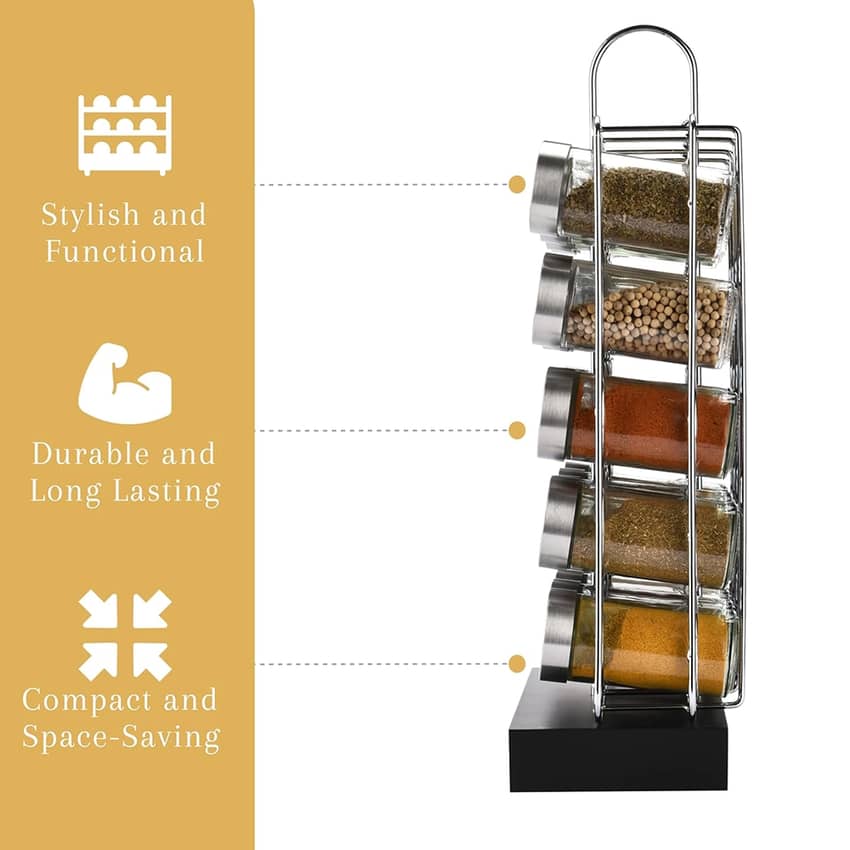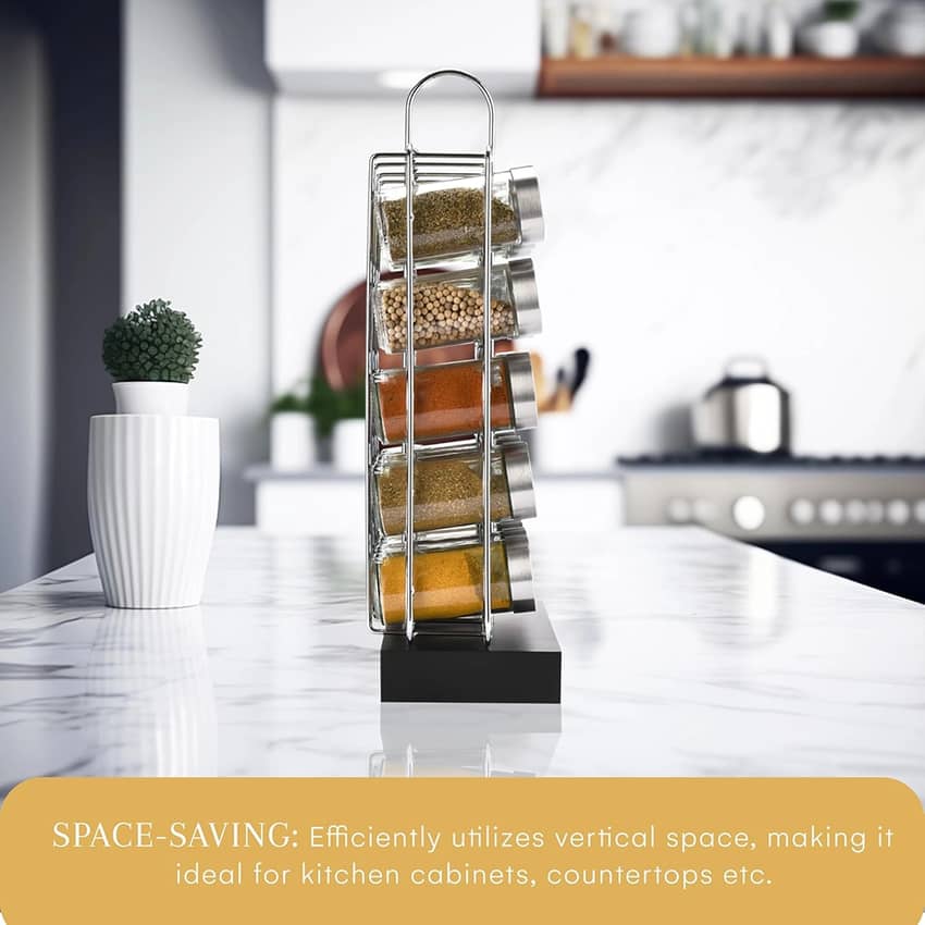 - Spice racks for countertops keep your spices fresh & free from dust or contaminants. The enclosed design shields your spices from exposure, ensuring retention of full flavor