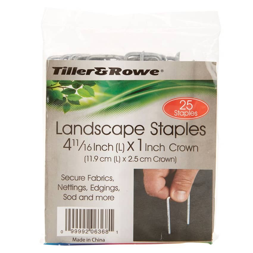 Tiller & Rowe Landscape Staples are a reliable and efficient way to secure a variety of outdoor materials. Made from durable steel, these staples are designed to hold down landscaping fabrics, netting, edging, sod, and more. These staples provide a firm grip in the ground, ensuring your landscaping projects stay in place. Each package includes 25 staples, offering enough to tackle most garden and yard tasks. Each staple measures 4.69 inches long and 1 inch wide.