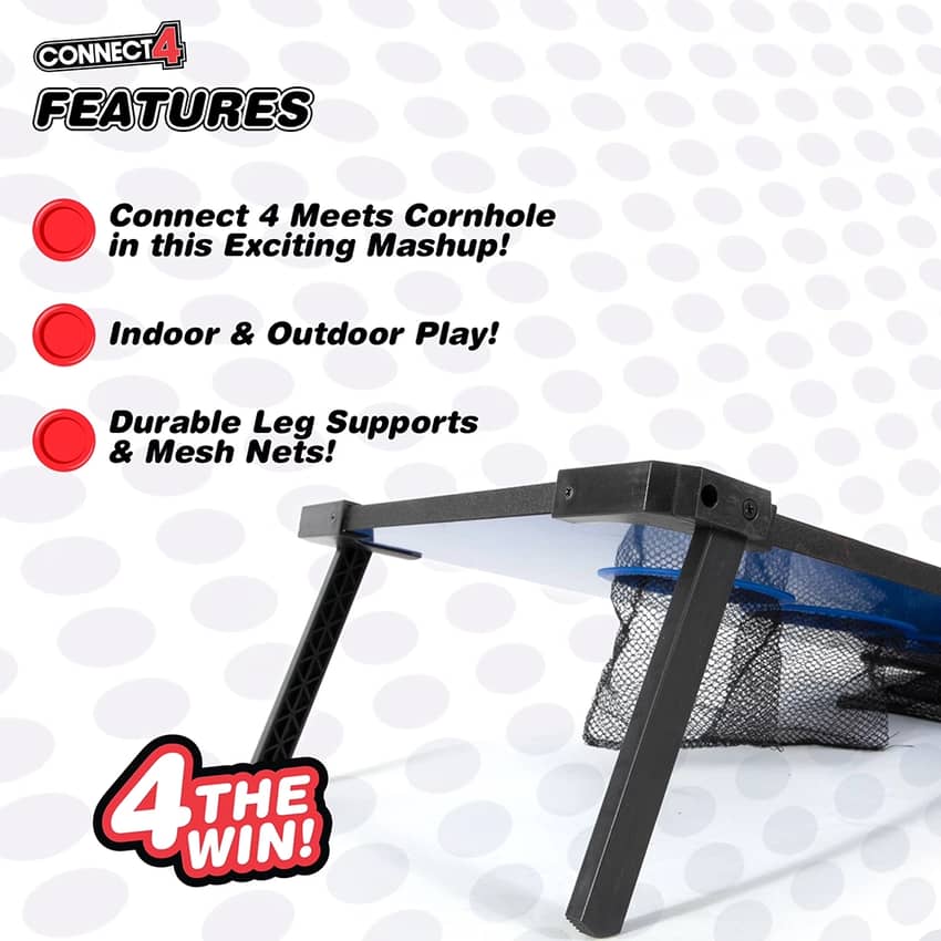- Connect 4 meets Cornhole! Match wits in this challenging game of skill and strategy