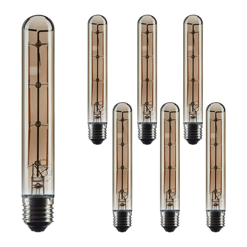 Enhance your home or business with the warm, inviting glow of the CROWN LED Smoky Edison Flute 4 Watt Light Bulbs. This 6-pack of E26 base bulbs combines a timeless vintage Edison style with the efficiency of modern LED technology. The beautiful smoky glass and 400 lumens of dimmable, warm white light create a cozy and elegant atmosphere, whether you're decorating a dining room or a chandelier. At just 4 watts each, these bulbs offer the same brilliance as a 40W incandescent bulb, making them a stylish and energy-efficient choice for any space. Each of these bulbs measures 7 inches long and 1 inch wide.