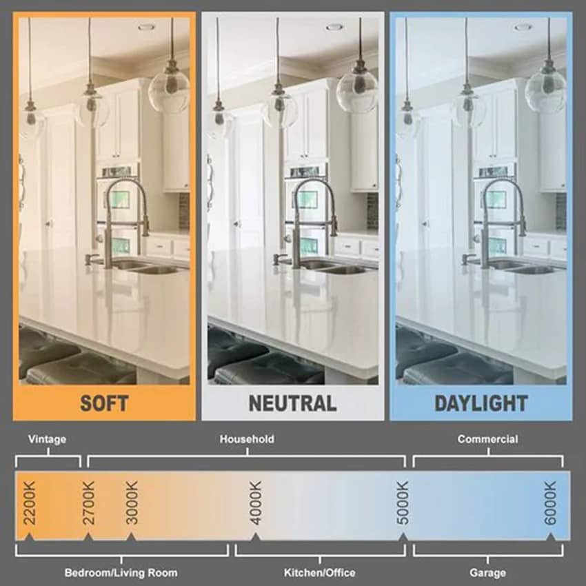 - With a correlated color temperature of 5000 kelvin, this bulb simulates daylight, providing a crisp white light for any room