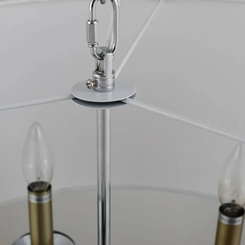 The HomCom 6-Light Modern Chandelier in White adds a touch of sophistication to any space. Featuring a stylish design with candlestick-shaped bulb bases and elegant fabric lampshades, this chandelier creates a warm and inviting ambiance. The adjustable hanging chain allows for customization to fit various ceiling heights, making it perfect for dining rooms, living rooms, bedrooms, and more. Constructed with a durable metal frame and a sturdy hanging chain, this chandelier provides long-lasting illumination and a touch of modern elegance to your home. For your convenience, this chandelier is suited for most bulbs with an E14 base, although the bulbs are not included. The hanging chain of this chandelier has a weight capcity of 14 pounds and the chandelier measures 20.75 inches long and 56 inches high.