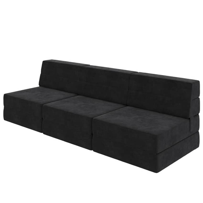 Novogratz Modular Armless Chair and Lounger, Black Microfiber