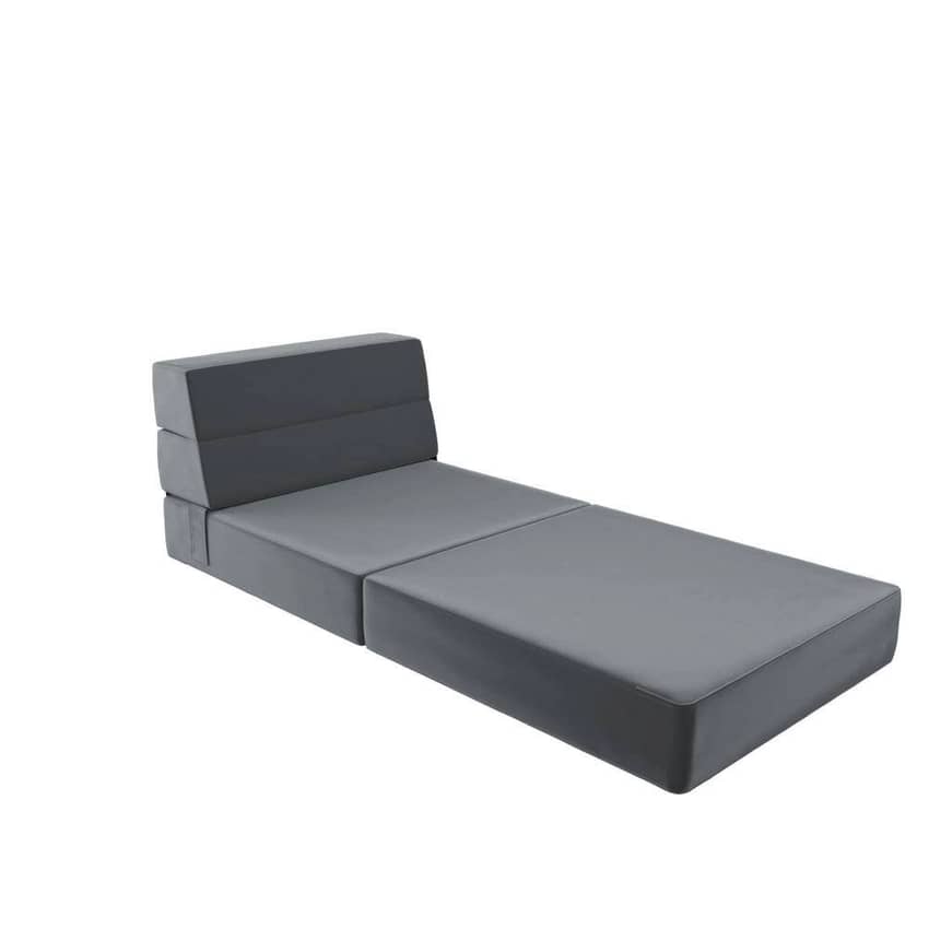 - Foldable flip chair features a 5-in-1 convertible design that transforms into a lounger, seat, bed, and sleeper with headrest by simply attaching or detaching the velcro fasteners