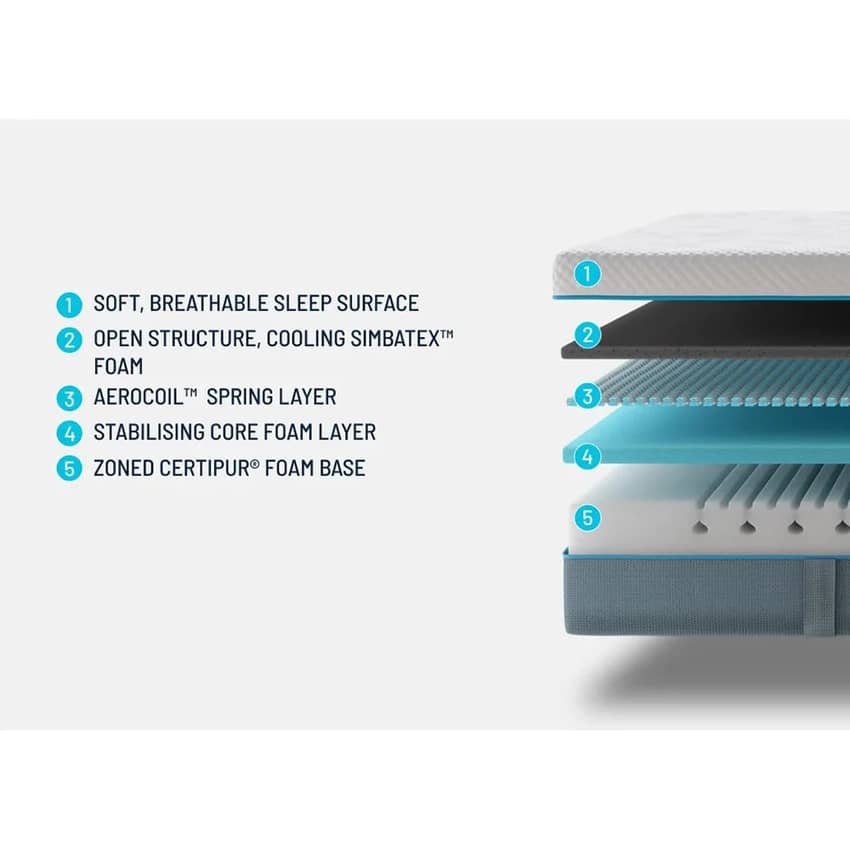 - Cooler sleep: Open-cell Simbatex™ foam, infused with graphite to draw heat away from the body