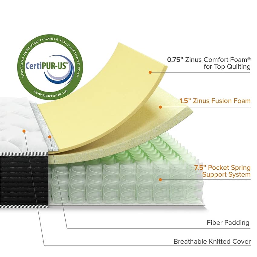 Zinus 10" Comfort Spa Sensations Classic Pocket Spring Hybrid Mattress, King