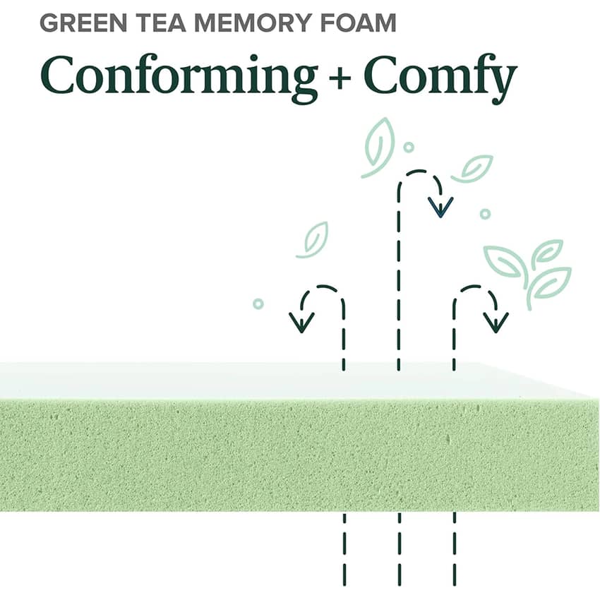 - Green tea infused into enveloping memory foam ensures long lasting freshness along with contouring softness