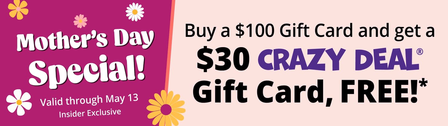 Imagine all the things you can get yourself (or mom) for FREE* when you get 30% back as a Crazy Deal Gift Card!