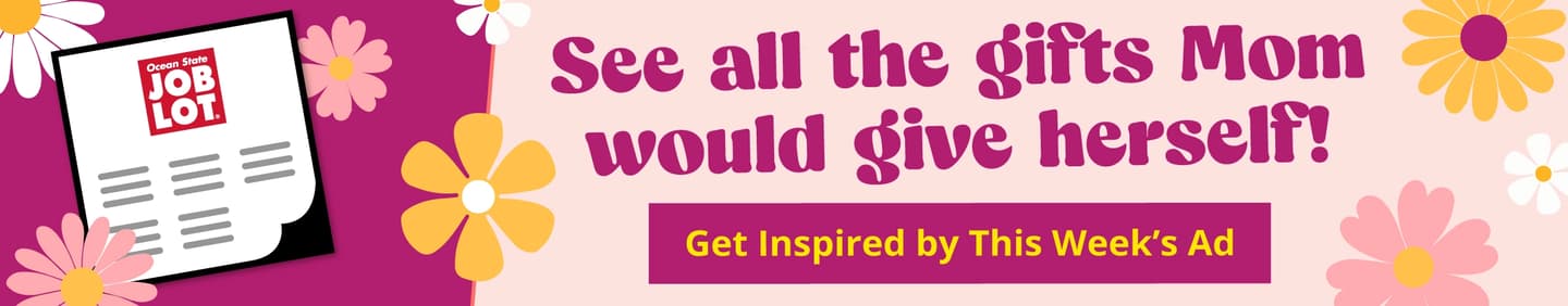 *Unless otherwise noted, the Mother’s Day Gift Card Promotion is valid 4/30/2026 through 5/13/2026. Job Lot Insiders receive a Crazy Deal Gift Card equal to 30% back when they buy $100 - $500 in Ocean State Job Lot Gift Cards. Purchase limit of $500 per Insider. No rainchecks. Merchandise credit and Crazy Deal Gift Cards cannot be used as a form of tender during this promotion. Offer may not be applied to past purchases. All warranty and return rules apply. Job Lot Insider customers can purchase any number of gift cards totaling a minimum of $100 to participate in the Mother’s Day promotion.
