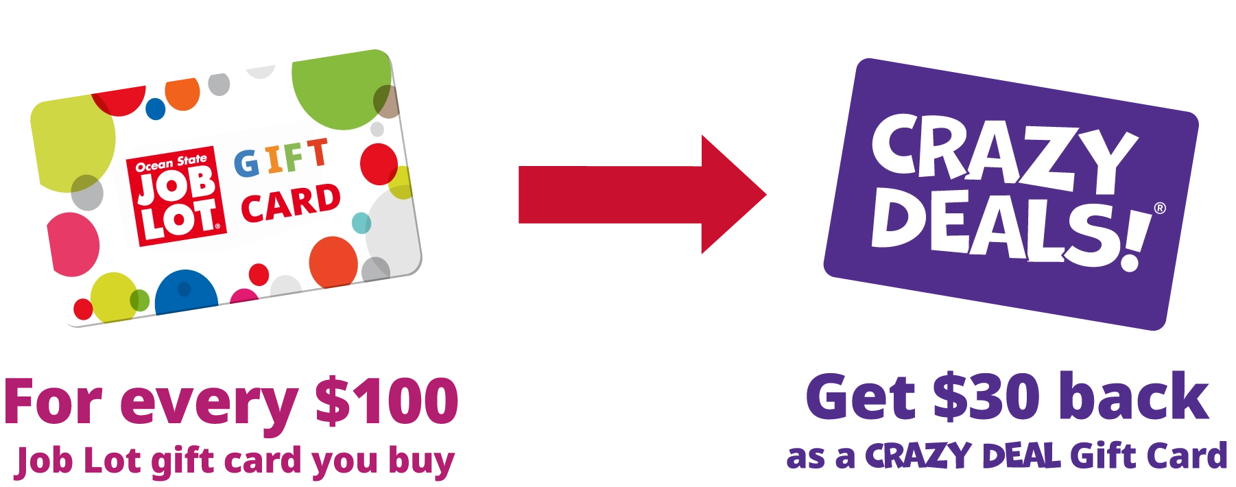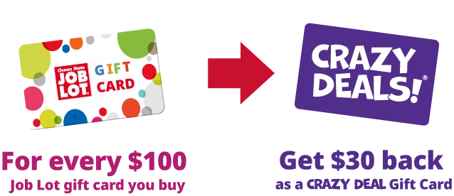 Buy $100 in Job Lot Gift Cards and get a $30 Crazy Deal Gift Card,