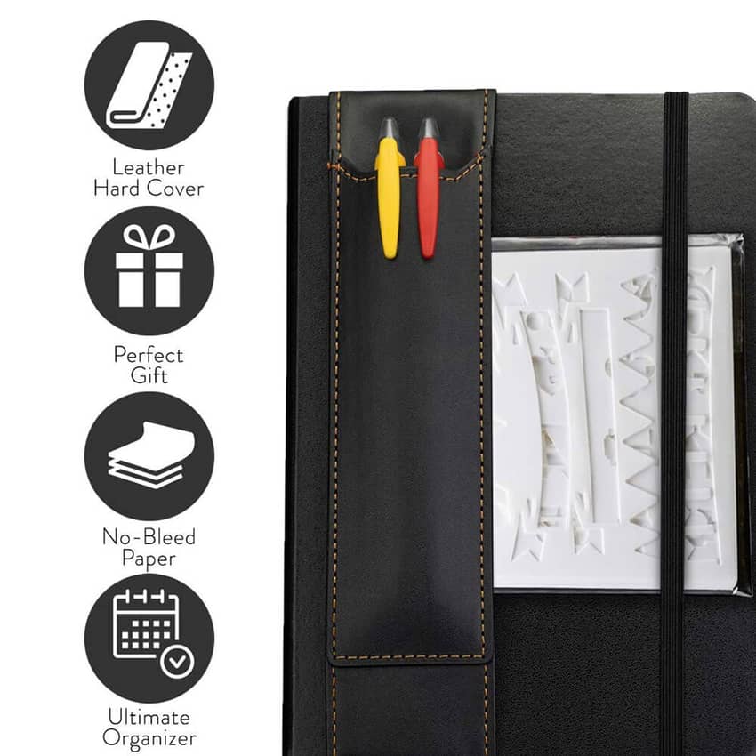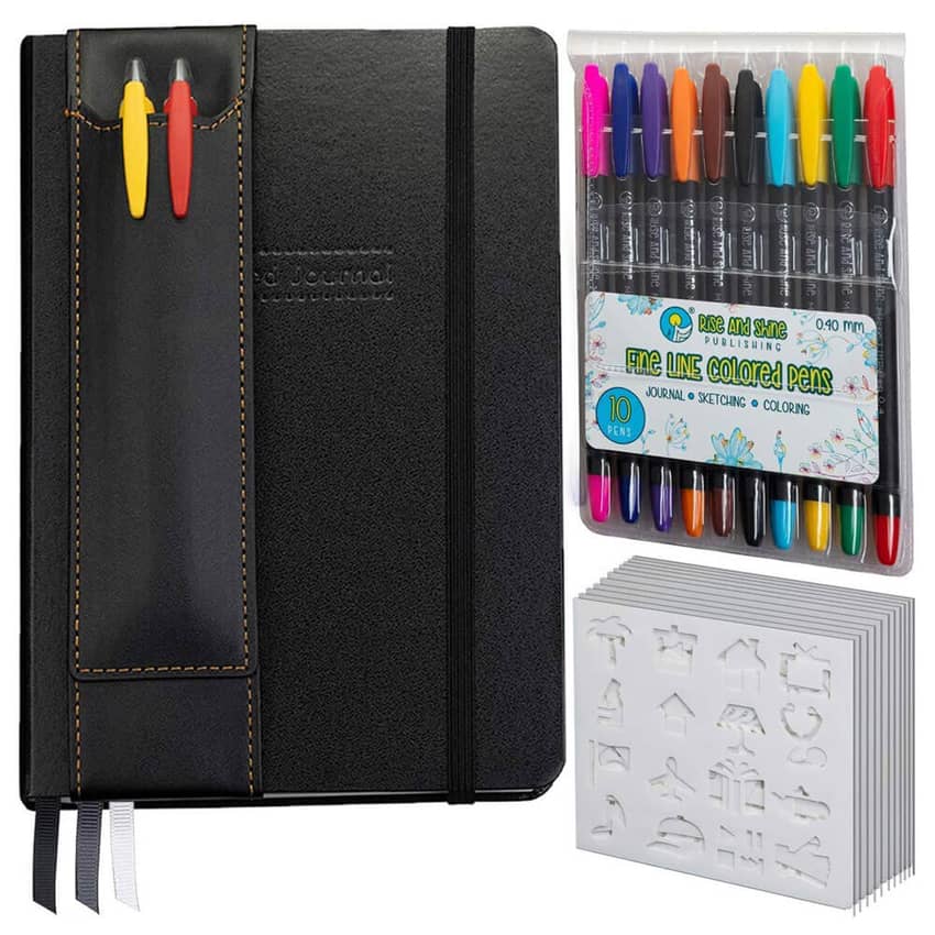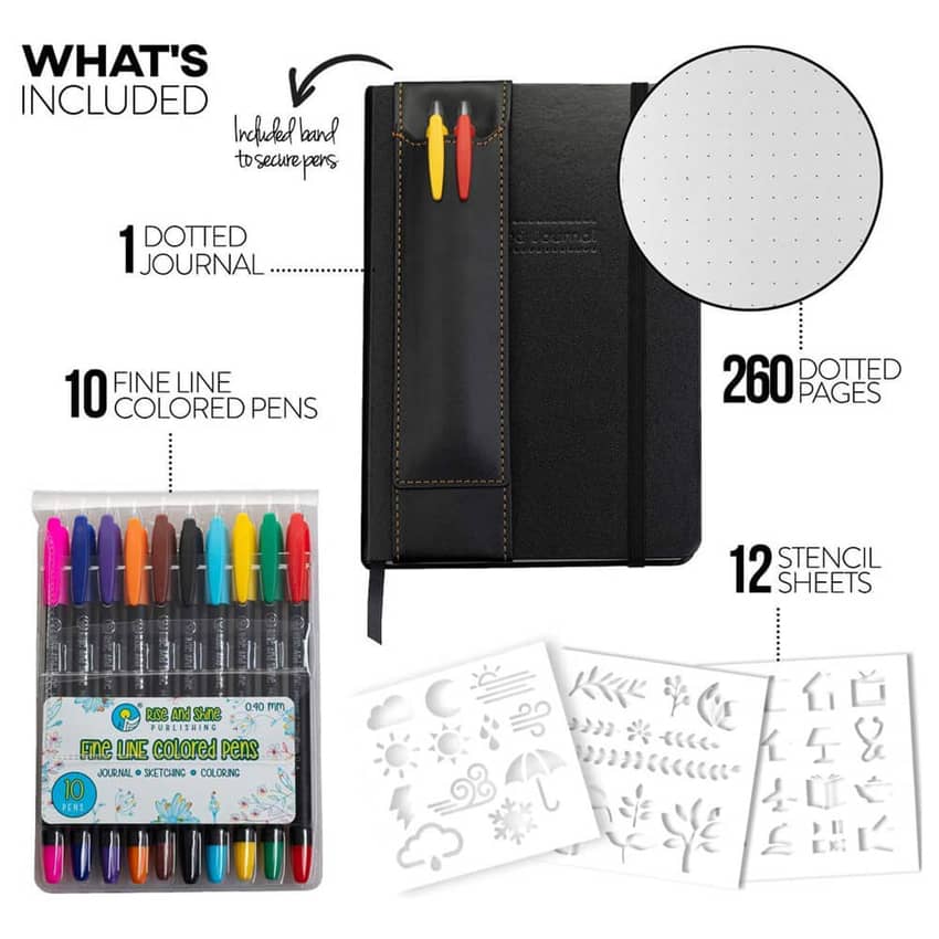 - Rise and Shine Publishing Bullet Notebook Journal Set with 10 Pens, 12 Stencils, & 3 Bookmarks