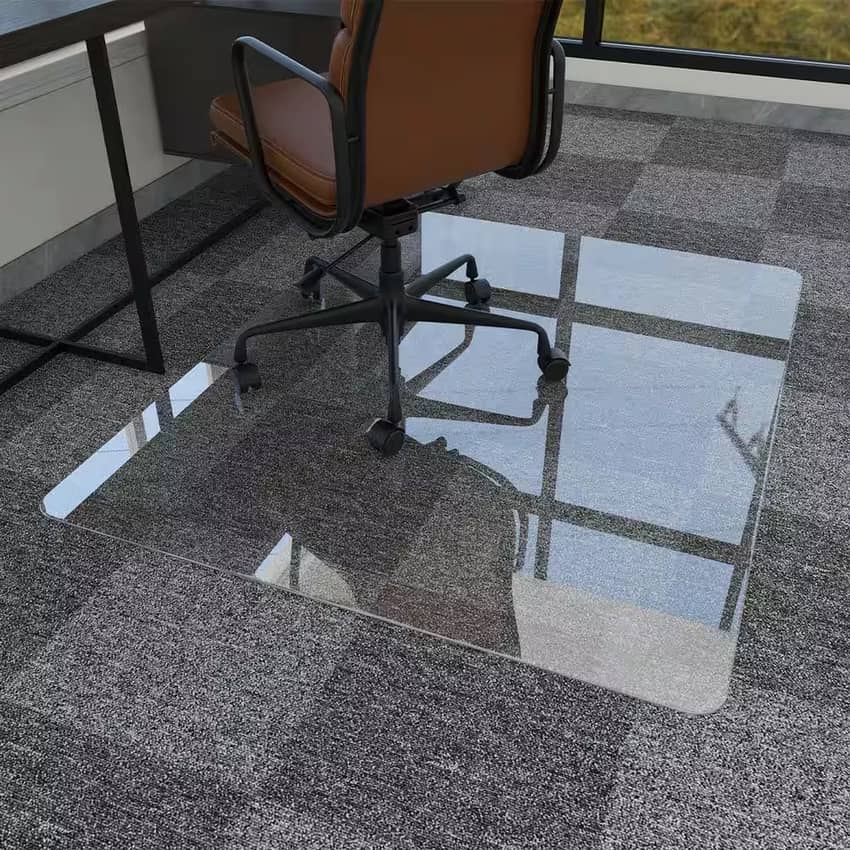 - Tempered glass chair mats for carpet and hardwood floors offers unparalleled durability
