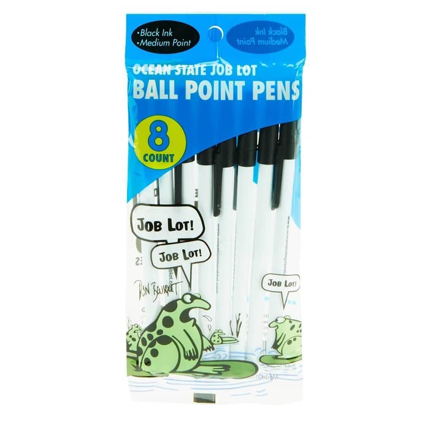 Ocean State Job Lot Black Ink White Ball Point Pens, 8-Count