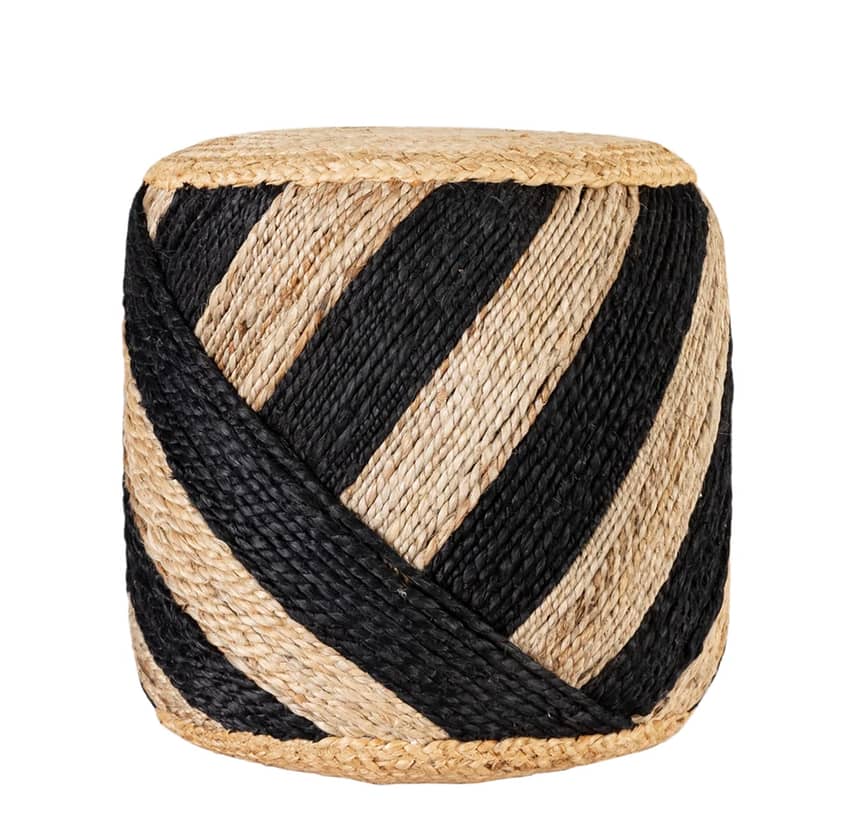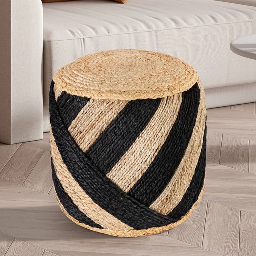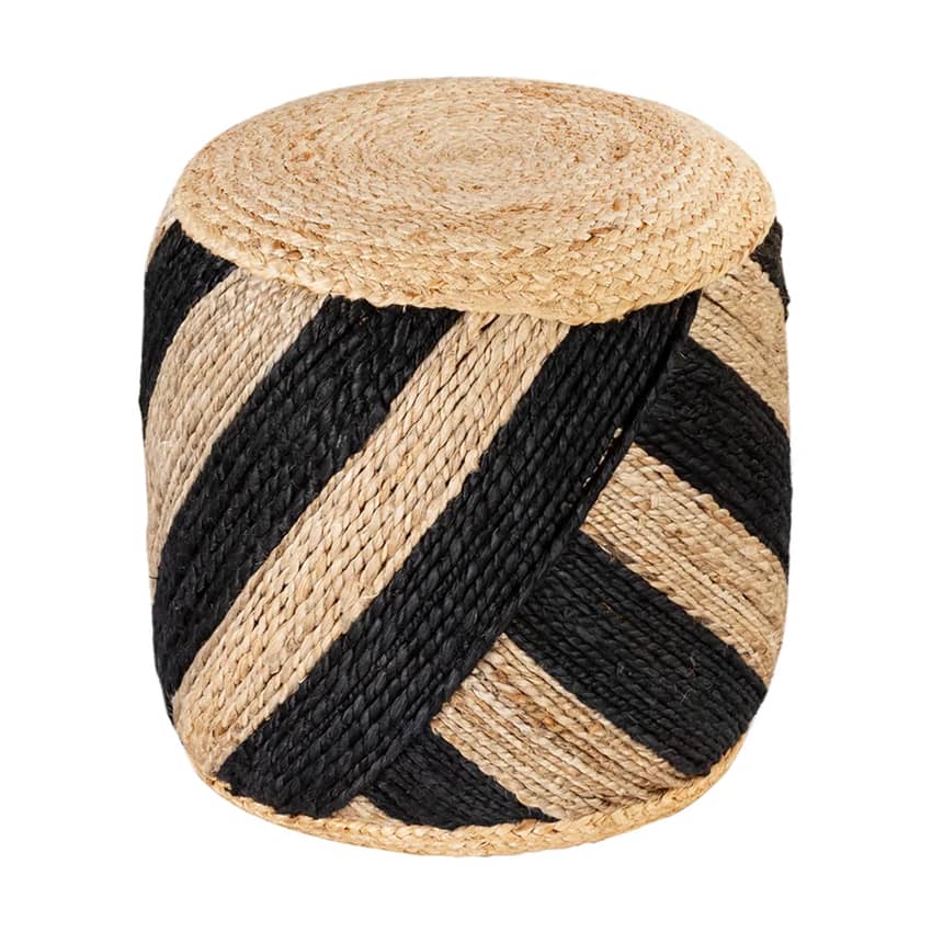 Albany Living Handwoven Jute Ottoman, Tan/Black