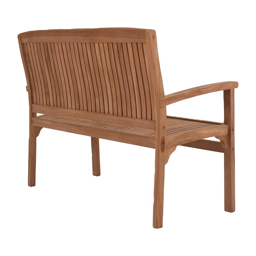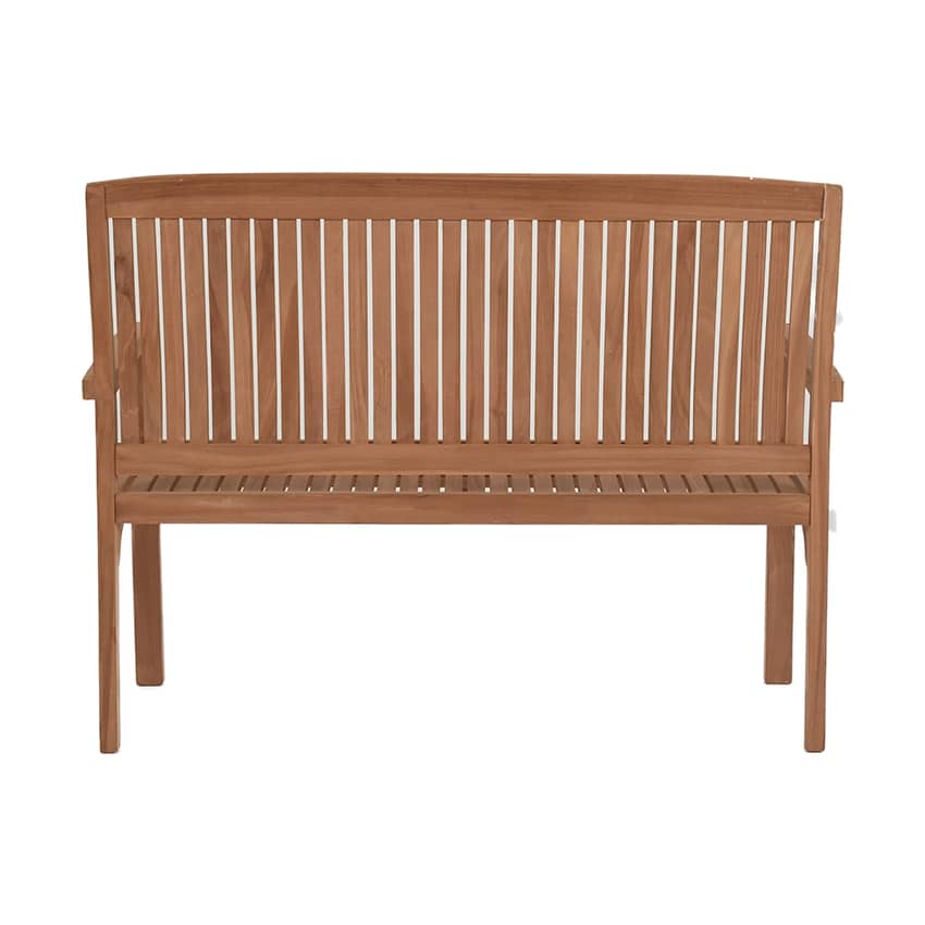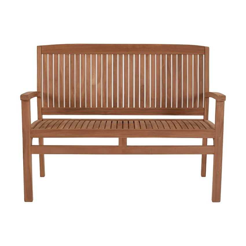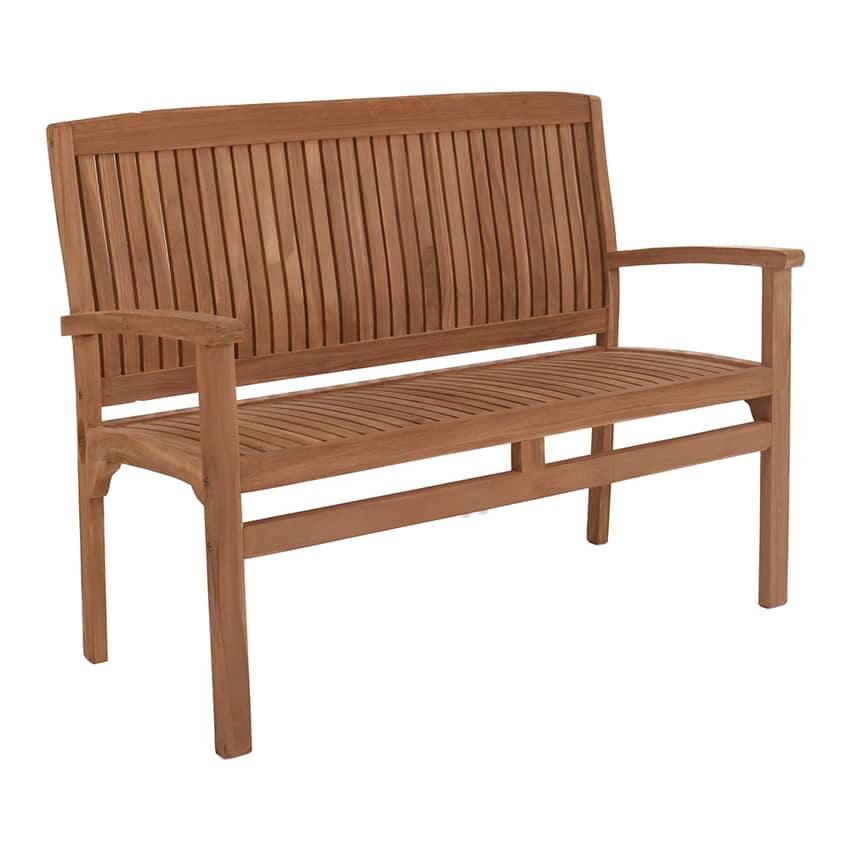 Enjoy enduring comfort and classic style with the Teak Slat Back Bench. Constructed from solid teak, this bench is made for years of reliable use and enjoyment. Its vented slat design ensures proper drainage, making it ideal for outdoor settings, while rust-resistant brass fittings enhance its durability and timeless appeal, giving you a sturdy and elegant seating solution for your garden, patio, or porch. This teak bench measures 43.3 inches long, 15.75 inches wide, and 36.2 inches high.