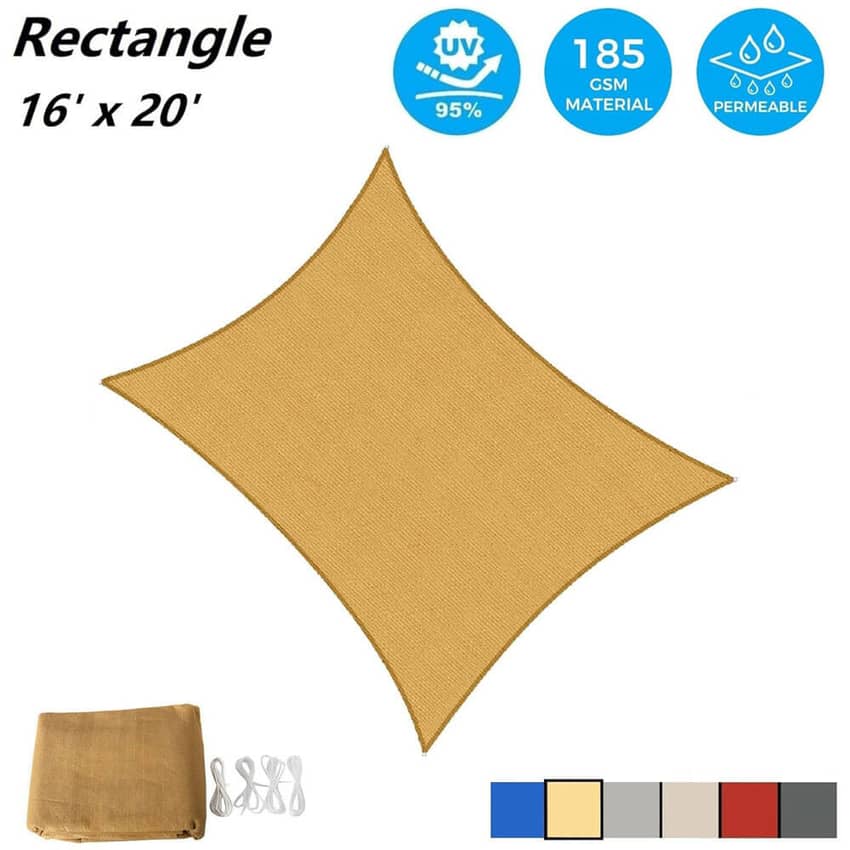 AsterOutdoor Rectangular Sun Shade Sail, 16’ x 20’, Sand