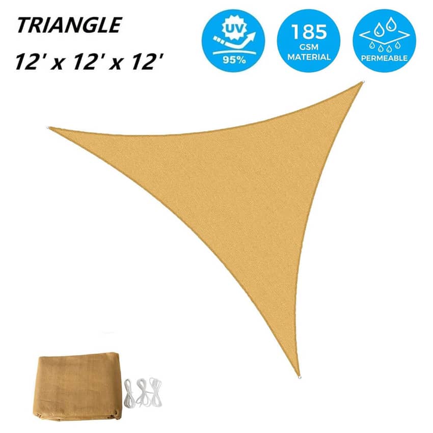 AsterOutdoor Triangular Sun Shade Sail, 12’ x 12’ x 12’, Sand