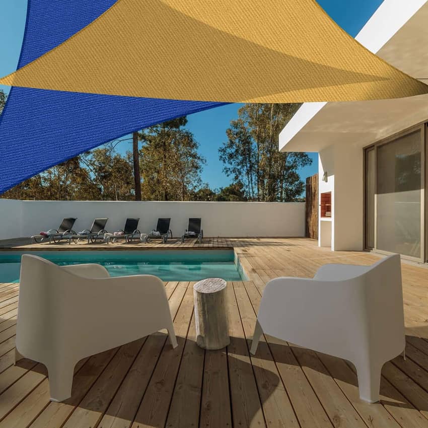 - Durable Construction: The shade sail canopy is a triangular shape with curved sides, enhancing pull strength and preventing drooping. The sun sail is available in several stylish colors and sizes that you can choose from