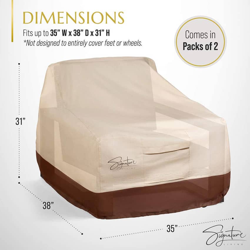 - 2 Pack of Patio Chair Covers: Our outdoor patio furniture covers will keep your chairs protected no matter how harsh the elements get. Use for an outdoor chair up to 35"W x 38”D x 31”H