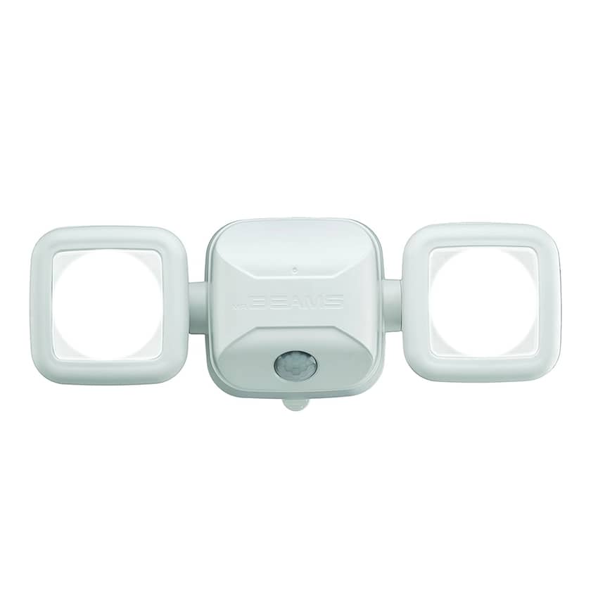 Illuminate your property with the powerful Mr. Beams 500 Lumen Wireless Motion Sensing LED Spotlight. This dual-head spotlight delivers an impressive 500 lumens, providing brilliant, wide-ranging light coverage of up to 800 square feet for large, dark areas. Its two adjustable heads offer ultimate customization, pivoting 180 degrees vertically and 135 degrees horizontally to direct light precisely where you need it. The motion-sensing technology detects movement from up to 30 feet away, instantly activating the bright LEDs for security and convenience. To conserve battery life, the light automatically shuts off 20 seconds after motion ceases. Designed for quick and easy installation, this wireless spotlight can be mounted in minutes with the included screws, making it perfect for garages, doorways, sheds, fences, and more. Its durable, weatherproof construction ensures reliable outdoor performance in any season. The Mr. Beams 500 Lumen Spotlight, in a clean white finish, requires 4 D batteries (not included) and measures 10.67 inches long, 3.62 inches wide, and 3.94 inches high.