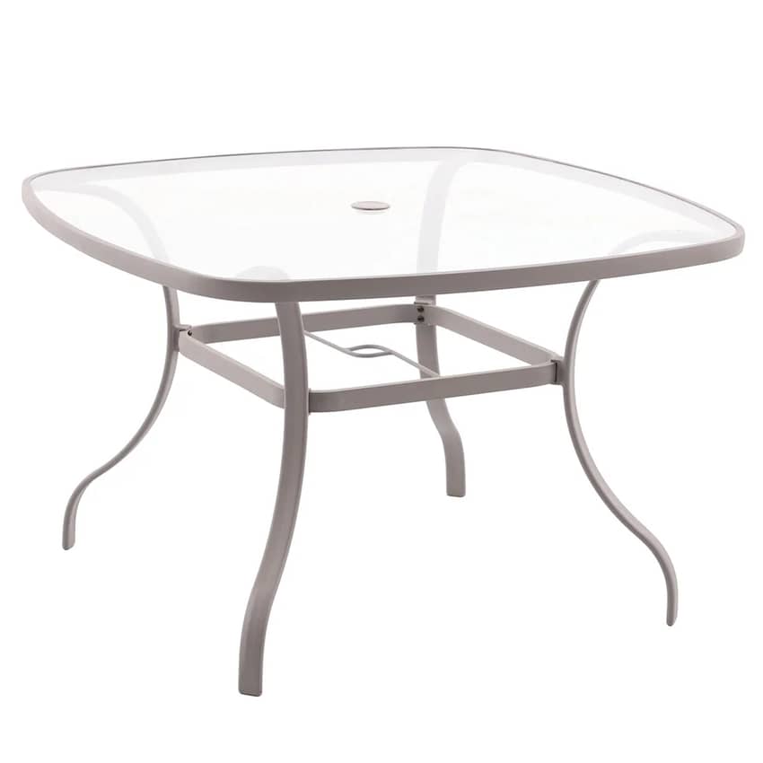 44" Square Aluminum Patio Table with Glass Top