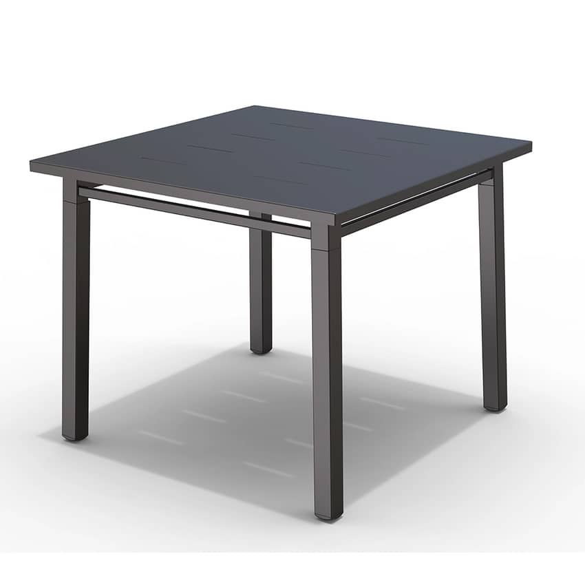 The Maiori Aluminum Square Patio Dining Table in Charbon offers a perfect blend of style, durability, and effortless functionality for any outdoor setting. Crafted from very durable and lightweight aluminum, this table is designed for minimal maintenance and is perfectly suited for use anywhere outside. The sturdy construction ensures stability without sacrificing handling ease, and the tabletop features a convenient 1.75-inch umbrella hole. Its lightweight nature and ability to seamlessly fit into any space make it an ideal choice for both small gatherings and larger outdoor dining arrangements. This table weighs 38.5 pounds and measures 35.4 inches long, 35.4 inches wide, and 29.1 inches high.