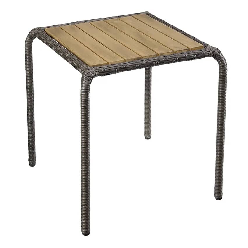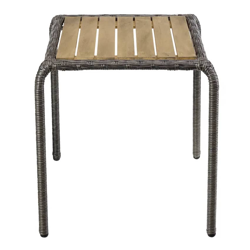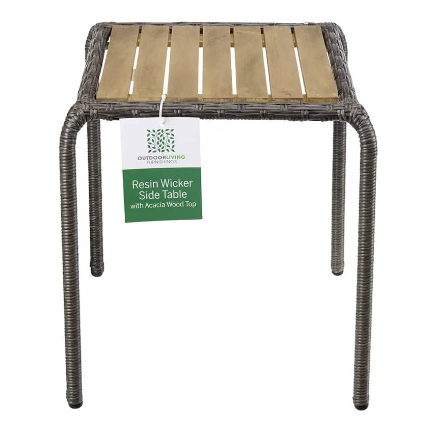 Outdoor Living Resin Wicker SIde Table with Acacia Wood Top