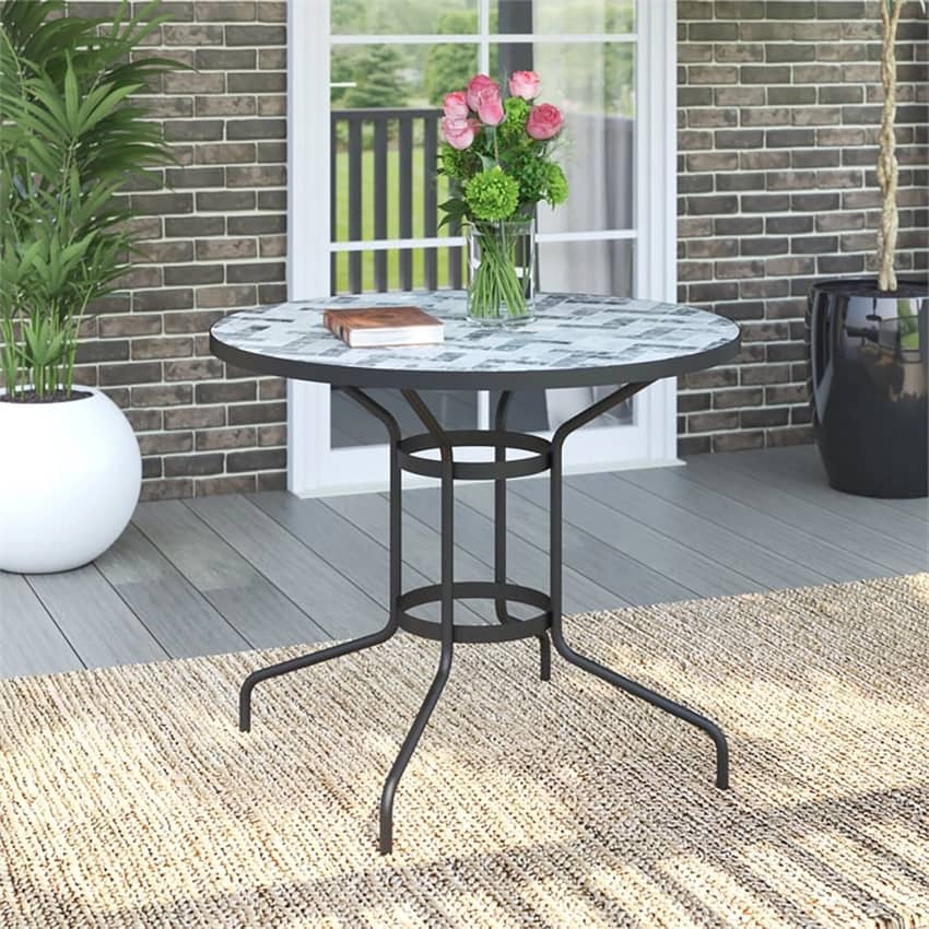 Adorn your patio with the TK Classics Mosaic Patio Table, a stunning centerpiece that comfortably accommodates four people and is sure to draw attention with its captivating geometric mosaic pattern. A durable powder-coated steel frame and a robust metal top help this table withstand the elements, promising long-lasting enjoyment. Its modern mosaic design elevates any outdoor space, providing a stylish surface for dining and entertaining. This table weighs 64 pounds and measures 35.4 inches wide and 29.5 inches high.