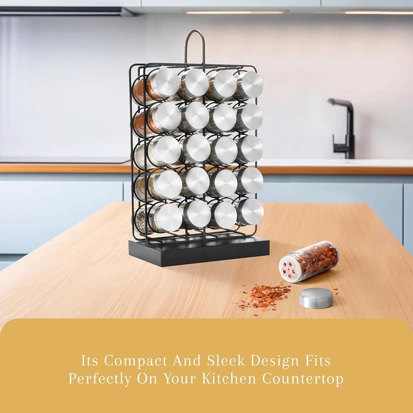 - Spice racks for countertops keep your spices fresh & free from dust or contaminants. The enclosed design shields your spices from exposure, ensuring retention of full flavor