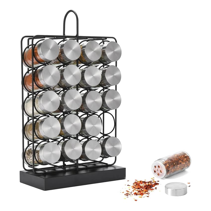 - Spice rack organizer with 20 spice jars