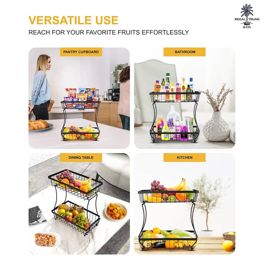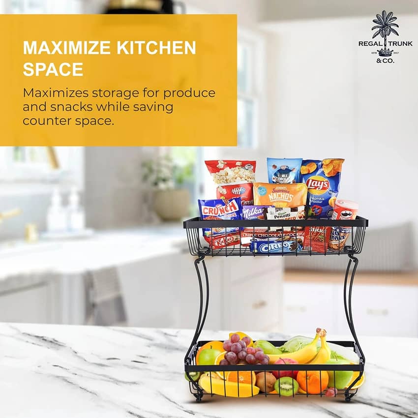 - 2-tiered fruit basket provides ample storage for fruits, vegetables, snacks without taking up valuable counter space. Say goodbye to clutter and hello to an organized kitchen