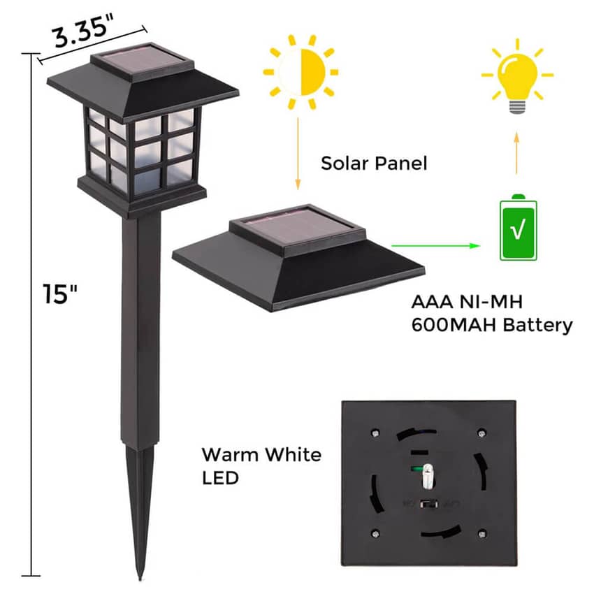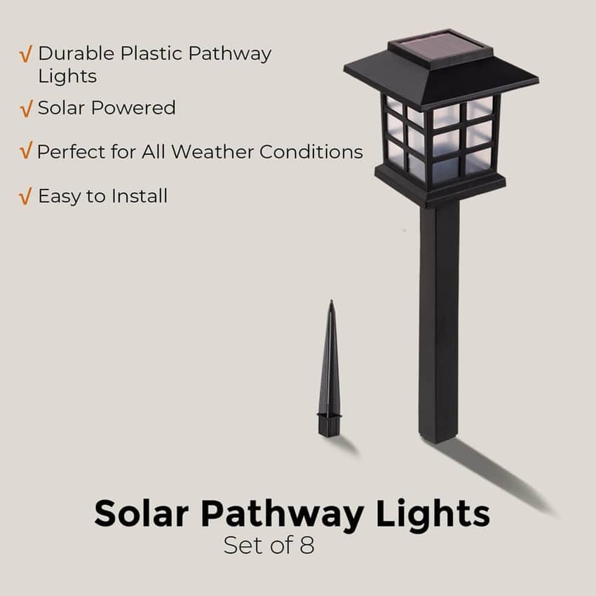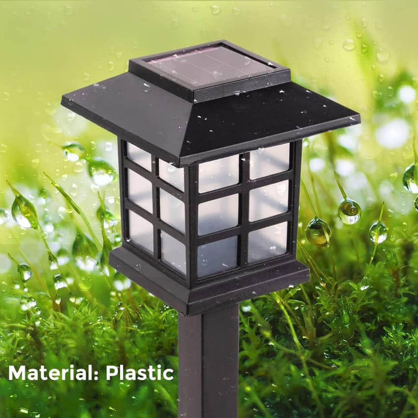 - Weatherproof Walkway Lights: Made from durable plastic, these solar path lights are waterproof and designed to withstand rain, snow, and frost. It measures 15" tall, so you can light up longer walkways or flower beds