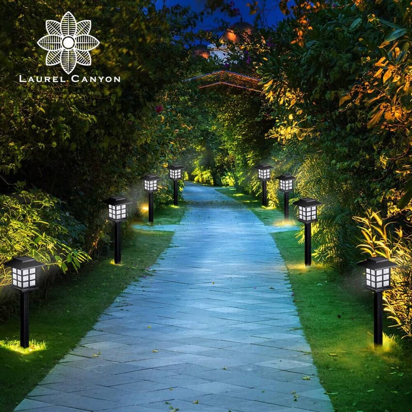 - Pathway Lighting for Safety: Create a warm welcome in your front yard by lining your walkway with these solar path lights. Not only will they shine with a warm white glow, but they will also highlight the pathway for increased safety