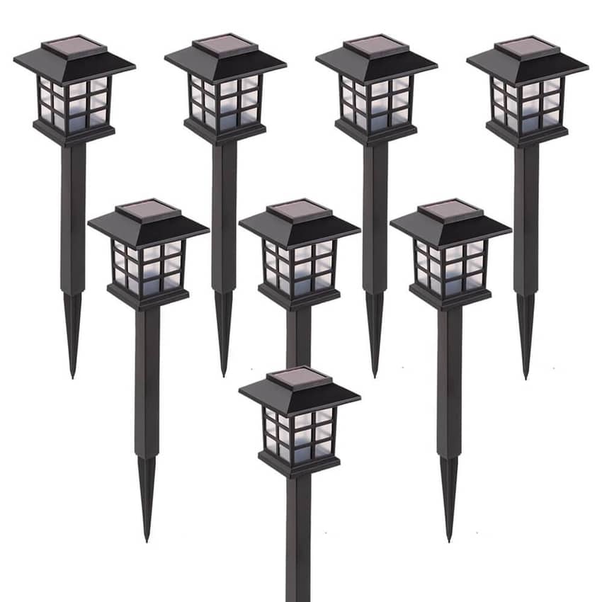 Laurel Canyon Square Solar Pathway Lights, 8-Pack, Black