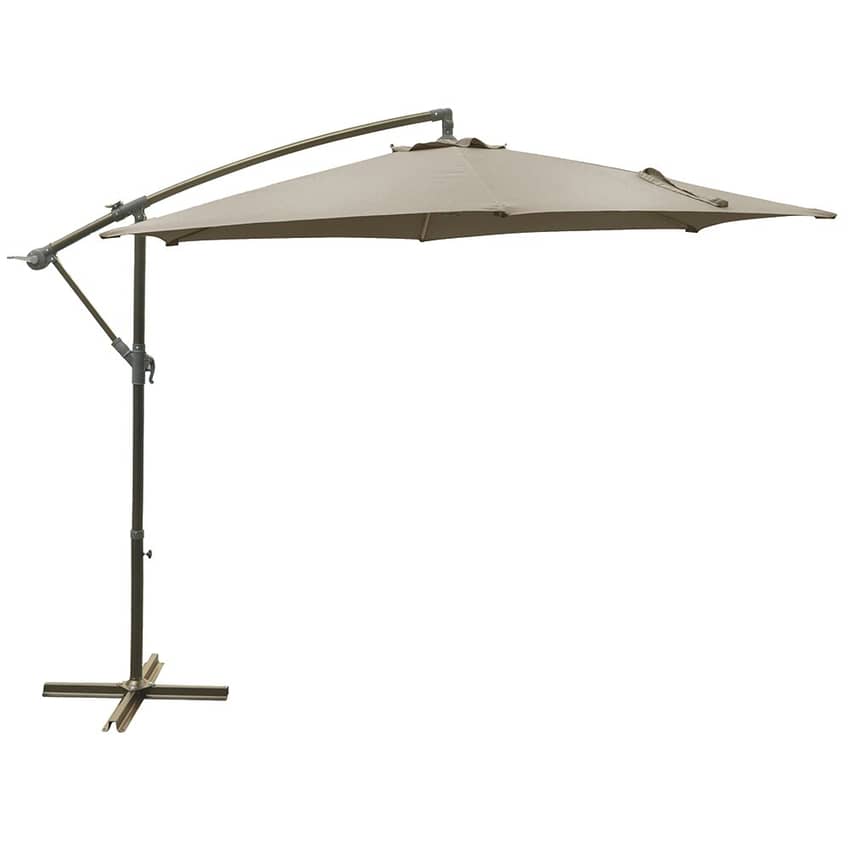 This 10-foot offset patio umbrella is a gorgeous addition to any patio, deck, or backyard area! Enjoy the outdoors while you lounge in the shade under the large canopy. The offset pole stays out of the way and creates openness, so you don't have to look around an umbrella pole to talk to friends. Steel pole construction is powder-coated for durability and strength. The umbrella opens and closes easily thanks to a simple crank system. Cross-shaped base requires a weighted base stand for balance (sold separately).