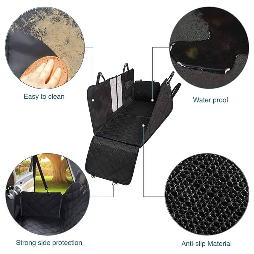 - The cover is placed over the back seat and fastened using adjustable straps to the head supports on both the front and back seats. Thanks to the zipper, the cover can be divided into two, so a person can sit next to it. You can also see your companion through the mesh net between the front seats while you’re driving. In addition, you get a velcro pouch with more storage space for toys or treats