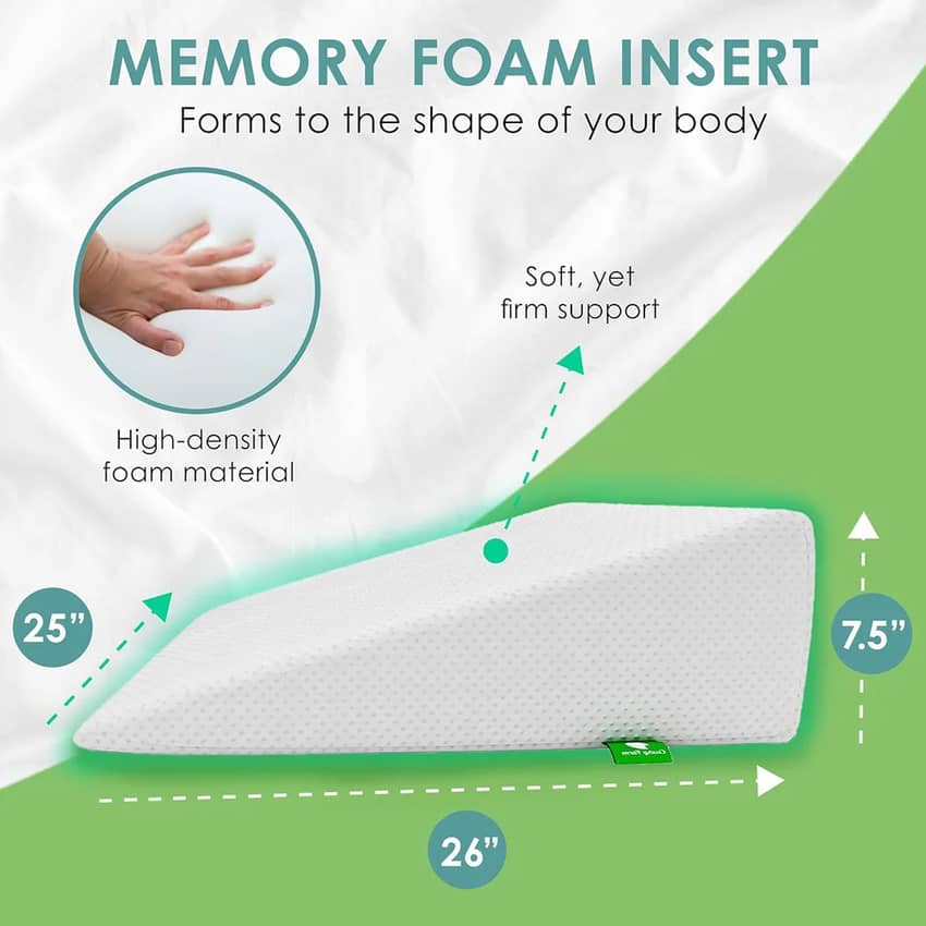 Experience targeted relief for upper body pain with the Cushy Form Memory Foam Wedge Pillow. This versatile pillow features a multi-purpose design that provides support for your back, shoulders, and neck. The plush, washable cover adds comfort and is easy to keep clean. The memory foam construction molds to your body for personalized support, promoting proper alignment and reducing discomfort. Whether you're sleeping, reading, or watching TV, the Cushy Form Wedge Pillow offers a comfortable and supportive solution for your upper body pain. This pillow measures 26 inches long, 25 inches wide, and 7.5 inches high.