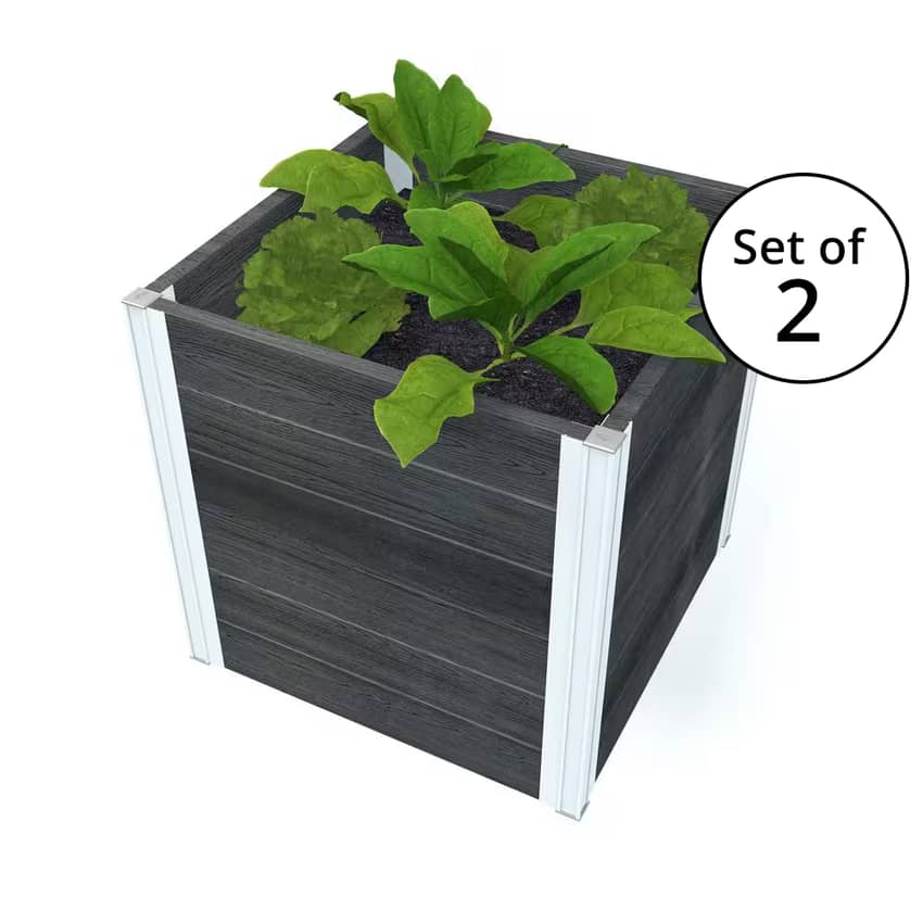 The Vita Urbana 22-inch Cube Planter Set brings a sophisticated, modern aesthetic to any home, business, or outdoor landscape with its sleek slate finish. This versatile pair of planters features embossed vinyl boards that masterfully mimic the natural texture of wood while offering the lightweight, weather-resistant durability of high-grade vinyl for a long lifespan. Assembly is remarkably simple, as the boards slide into the posts with minimal tools, requiring only a drill and a Phillips #2 head bit, making it easy to set up your 2.8 square foot planting area in no time. While each cube boasts a generous 5 cubic feet of soil capacity, they are designed to be flexible. They can be styled together as a cohesive unit or placed separately to accent different areas. If you're bringing the outdoors in, just remember to use a liner or potted inserts, as the sleek design is optimized for drainage and is not water-tight for indoor flooring. Each cube planter weighs 21 pounds and measures 22 inches long, wide, and high.