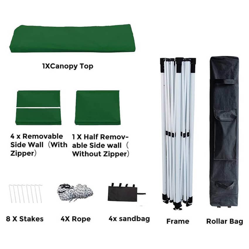 10' x 10' Pop-Up Canopy Tent with 4 Sidewalls, Forest Green